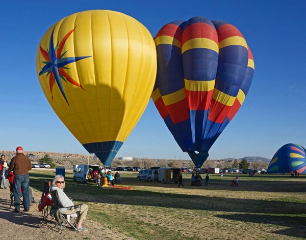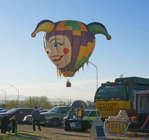 The Belen St Patrick’s weekend festival has been drawing balloons for a number of years. They expected 60 balloons this year, and in person, it seemed like there were at least that many. The turnout of townspeople was huge. It was a perfect weather, blue sky, clear and warm March 18 morning. The mass ascension honored a long-time participant who died recently by allowing his Smoky the Bear balloon to inflate and ascend first.